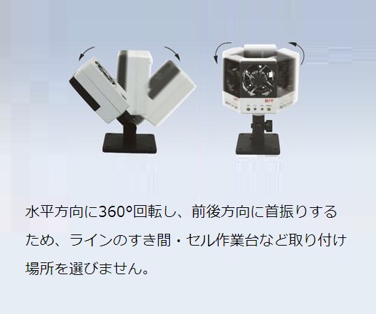 ●水平方向に360°回転し、前後方向に首振りするため、ラインのすき間・セル作業台など取り付け場所を選びません。
