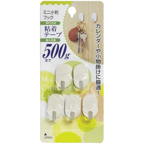 ミニ小判フック 耐荷重500g 5個入