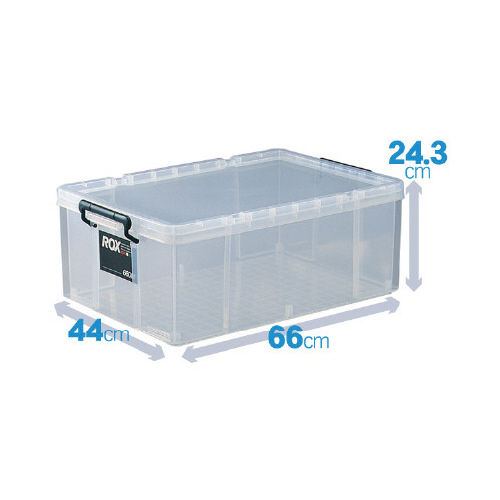 ロック式のフタ付きで丈夫な樹脂製ボックス。スタッキングもできて便利!キャスター(別売)を取り付ければ移動もラク!ロープを掛けられる溝がフタに付属。