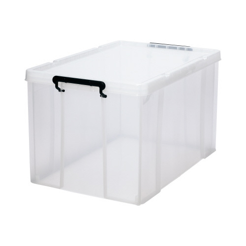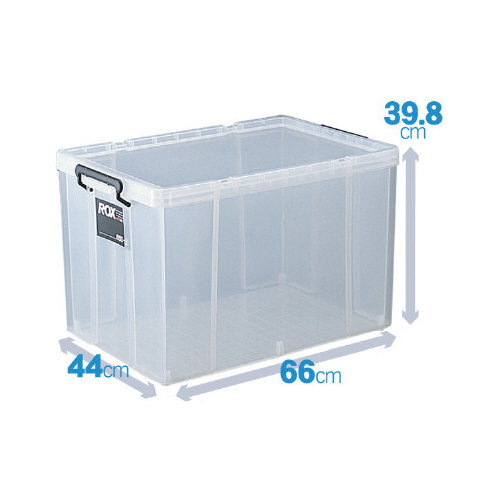 ロック式のフタ付きで丈夫な樹脂製ボックス。スタッキングもできて便利!キャスター(別売)を取り付ければ移動もラク!ロープを掛けられる溝がフタに付属。