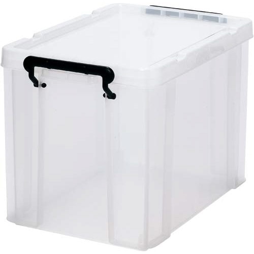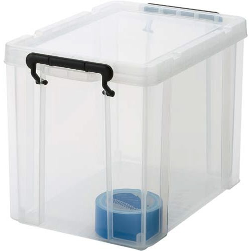 ロック式のフタ付きで丈夫な樹脂製ボックス。スタッキングもできて便利!キャスター(別売)を取り付ければ移動もラク!ロープを掛けられる溝がフタに付属。