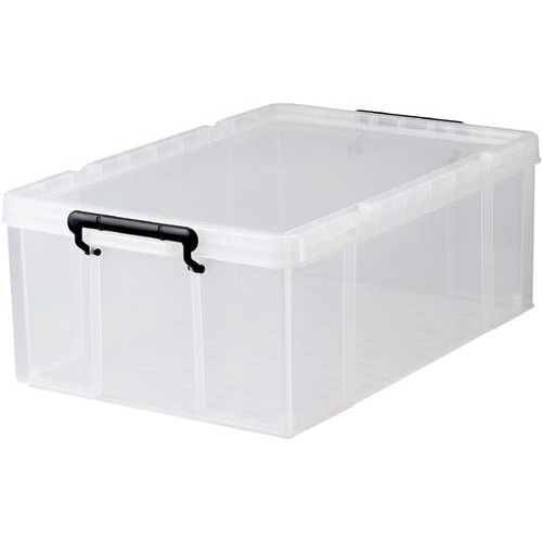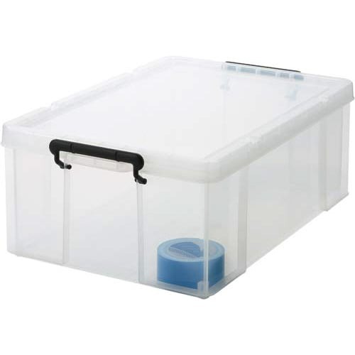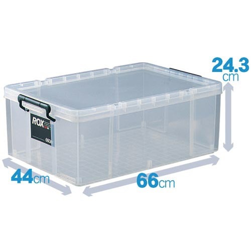 ロック式のフタ付きで丈夫な樹脂製ボックス。スタッキングもできて便利!キャスター(別売)を取り付ければ移動もラク!ロープを掛けられる溝がフタに付属。