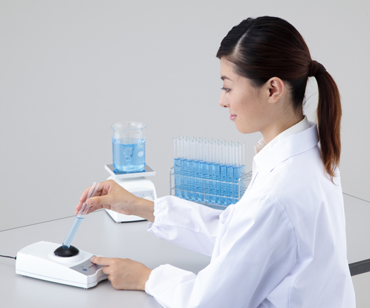 ●低速から高速まで安定した力強い振盪・撹拌が可能です。 試験管からマイクロプレート、ビーカーがこれ1台でミキシング。