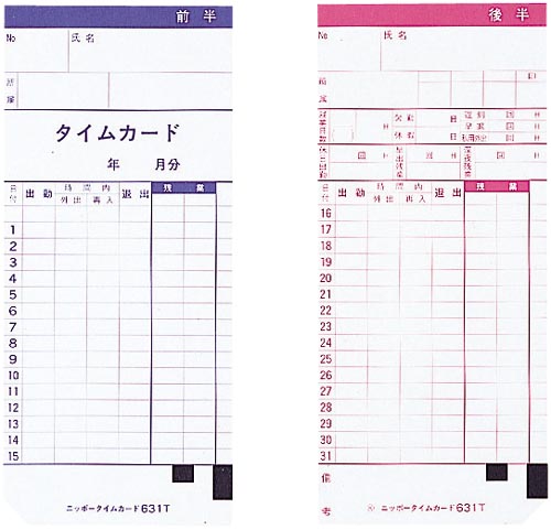 月末締め用。ニッポータイムレコーダー用の純正タイムカードです。