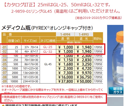 ●※乾熱滅菌を行う際は別売の赤キャップとリング(赤)高温用(2-9859-01)をご使用ください。