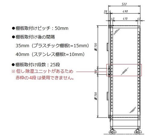 ●棚板寸法/取付けピッチ:490×460mm/50mm