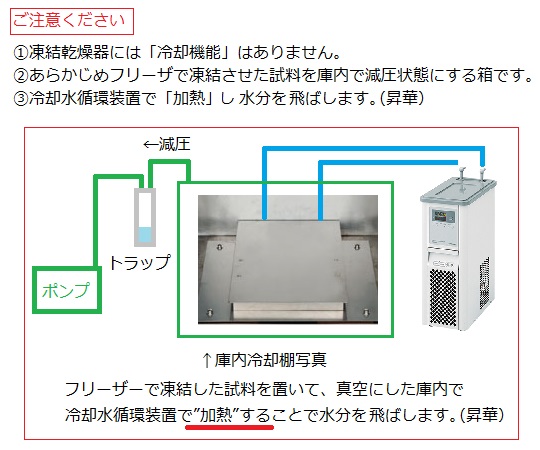 ●冷却水循環装置によって冷却された冷却棚で凍結状態を維持します。