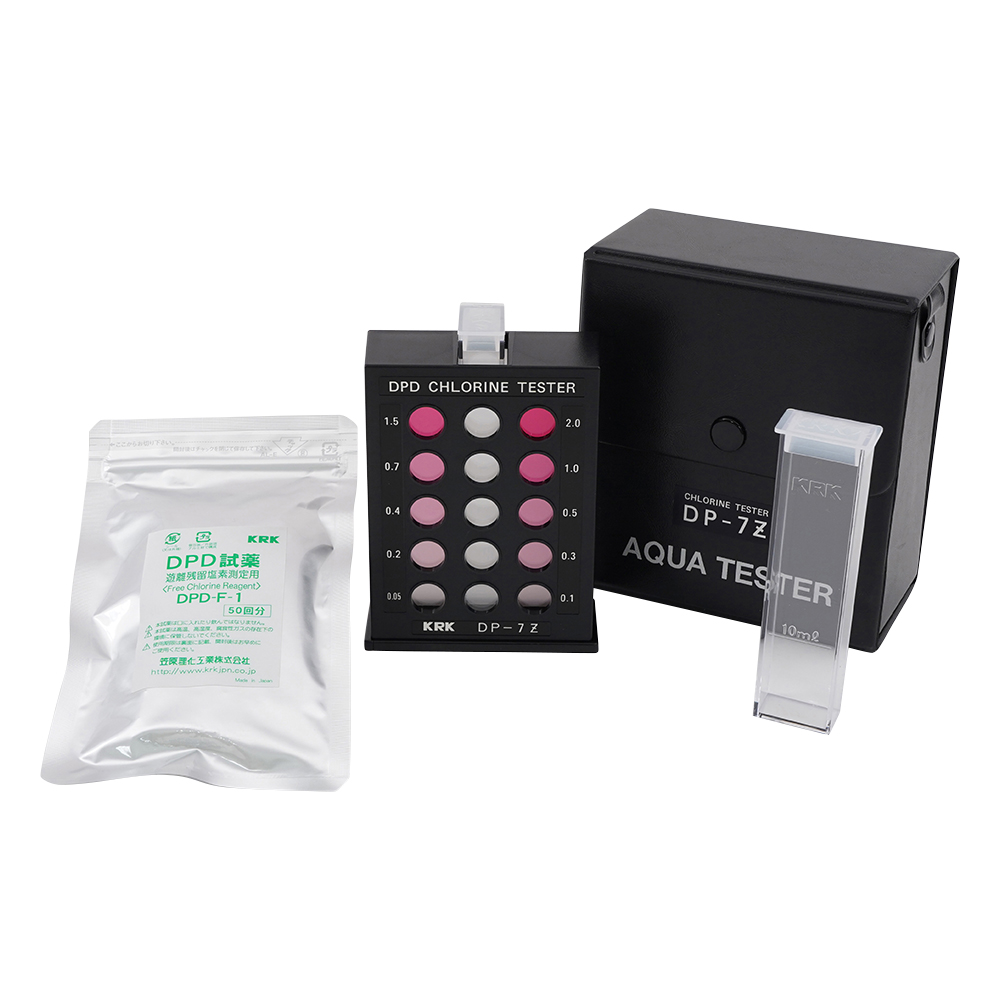 ●セット内容:DPD比色測定器、比色管(フタ付き)×2本、測定試薬(遊離残留塩素)×50回分、収納ケース