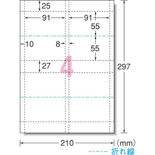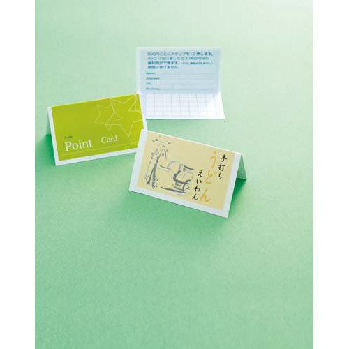 各種プリンタ兼用で印刷できる、上質紙素材の名刺用紙です。印刷後、ミシン目に沿って山折り谷折りするだけで切り離すことができます。折りたたむと名刺サイズになるポイントカード作成に便利なカード。