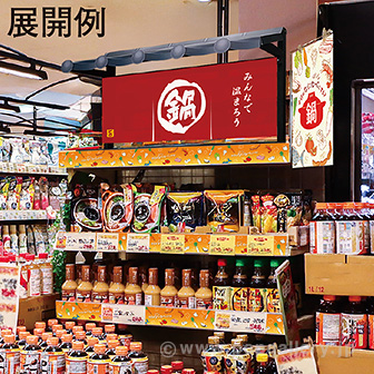 特に、防炎加工が施されておりますので、商業施設や飲食店など、火気の近くでのご使用にも安心してご利用いただける点が大きな特徴です。鍋料理フェアや冬季限定メニューの導入時に、売り場の賑わいを効果的に創出し、集客と販売促進を強力にサポートいたします。