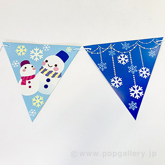 本製品「なかよしスノーマンフラッグガーランド」は、冬季やクリスマスの店舗装飾に最適な販促ツールでございます。雪だるまをモチーフとした可愛らしいデザインが、売り場に温かく楽しい雰囲気を演出し、お客様の関心を引くアイキャッチとして機能いたします。