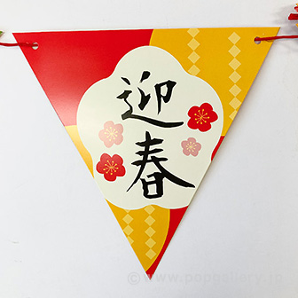 全長180cmと十分な長さがあり、1本での使用はもちろん、複数本を組み合わせて広範囲を装飾することで、より一層華やかな新春の雰囲気を創出できます。紙とひもで構成されており、軽量で設置が容易なため、短期的な季節イベントの販促ツールとして、店舗の壁面や陳列棚上部など、多様な場所でご活用いただけます。
