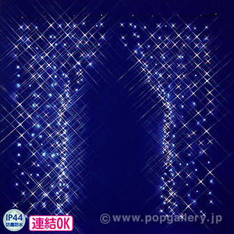本製品「ギャラクシーカーテンライト(ホワイト)」は、400球のLEDライトが銀河のように煌めく、幻想的な演出を実現するカーテンライトでございます。特に、クリスマスやウィンターシーズンの店舗装飾、イベント会場の空間演出に最適です。広範囲(H190×W200cm)をカバーし、自動点滅機能により、見る人の目を引くダイナミックな光の演出を容易に創出いたします。