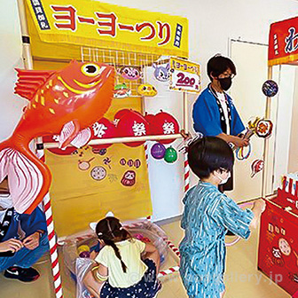 ヨーヨーつりなどの縁日イベントに特化したデザインで、集客効果を高めます。店舗の夏祭りや地域イベント、商業施設のファミリー向け催事など、短期間の季節イベントにおける特設ブース設営に最適です。屋内専用のキットですので、雨天や強風を気にせず安心してご使用いただけます。