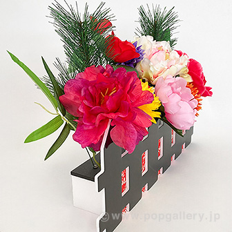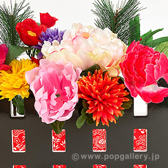 本製品「迎春垣根スタンド」は、置くだけで新年の店内にふさわしい華やかな空間を簡単に演出できる装飾スタンドです。お正月シーズンの店舗やイベント会場の入り口、商品陳列棚の横など、お客様の目につきやすい場所に設置することで、おめでたい雰囲気を高め、集客効果を促進いたします。手軽に設置が可能ですので、新年の季節イベントにおける販促ツールとして幅広くご活用いただけます。