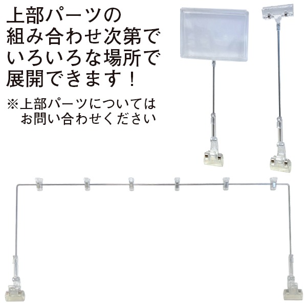 本製品「パワークリップ下部 クリアL」は、店舗のワゴンやゴンドラ什器に取り付けて、販促用POPを効果的に掲示するためのクリップです。首の部分を曲げられる構造により、POPを突き出すように設置でき、お客様の視線を集めるアイキャッチ効果を大幅に高めます。これにより、特売品や新商品のプロモーションにおいて、高い視認性と訴求力を発揮いたします。