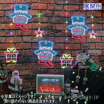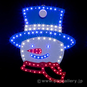 3体のスノーマンが連なったデザインは、店頭やウィンドウ、屋外空間を華やかに彩り、お客様の目を引く強力なアイキャッチとして機能いたします。防滴仕様で屋外での使用も可能でございますので、商業施設のエントランスやイベント会場など、幅広いシーンでの集客・販促に貢献いたします。常時点灯と一部自動点滅の切り替えにより、賑やかな演出を実現します。