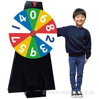 商品名: BIGルーレットサイズ: 本体:約131×70×60cm材質: ダンボールコンセプト: 迫力満点の大きさで会場での注目度抜群!詳細仕様: 納品まで約2週間です。※納品希望日を選択する場合は上記納期をご確認の上、ご注文下さい。盤面:約Φ70cm、カートンサイズ:81×73×38cm、組立式、セット内容:盤面付き本体上部・本体下部・スタンドパーツ・組立説明書