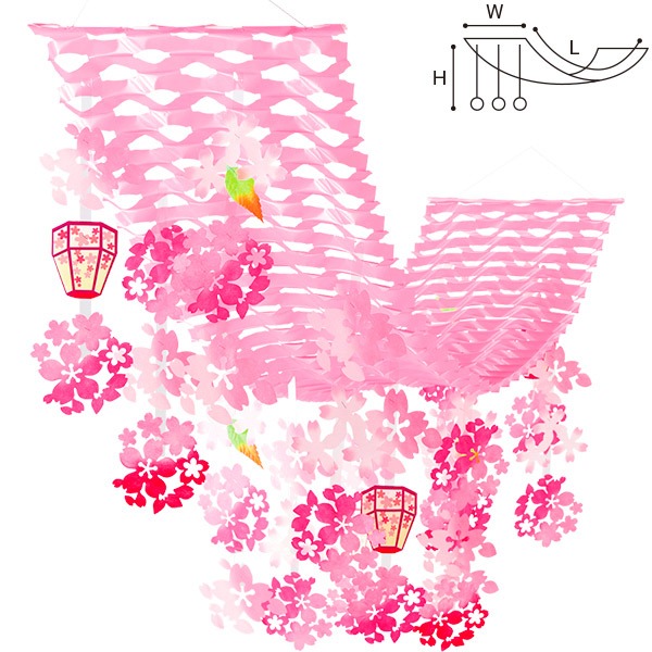 特に、ひなまつりや卒業・入学シーズン、春の食品フェアなど、店舗や商業施設のプロモーションにおいて、空間全体にお祝いムードと賑わいを創出するために最適です。天井から吊るすだけで簡単に設置でき、陳列棚の上部やメイン通路の装飾としてご活用いただけます。