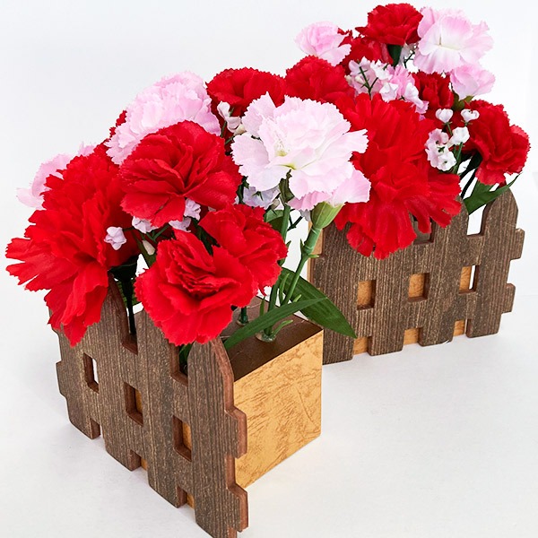 本製品「カーネーション垣根スタンドセット」は、母の日シーズンをはじめとした店舗の季節演出に最適な卓上装飾セットでございます。カーネーションの華やかなモチーフと垣根風のデザインが、温かく目を引く売り場を速やかに演出いたします。