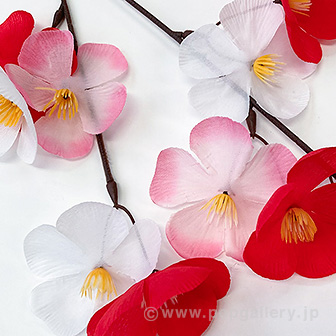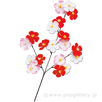 商品名: カラフル大梅スプレー サイズ: L57cm 材質: 布・PE 詳細: 花径7cmで存在感のある梅の花を表現しております。