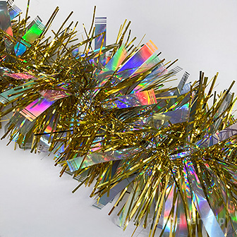 本製品「3インチオーロラモール(ゴールド)」は、店舗やイベント会場の装飾に最適なモールです。華やかなゴールドの輝きと、オーロラ加工による多面的な光の反射が、空間を豪華に演出いたします。主にクリスマスやお正月などの季節のイベントにおける華やかな販促装飾として、陳列棚の縁取りや、天井からの吊り下げ装飾、ウィンドウディスプレイのアクセントなど、幅広い用途でご活用いただけます。モールを複数使用することで、ボリューム感のある賑やかな売り場作りを効果的にサポートいたします。
