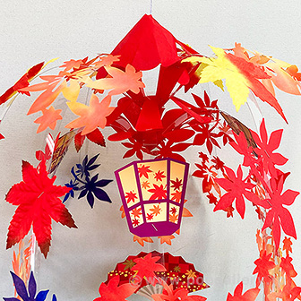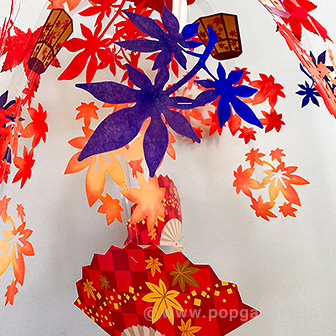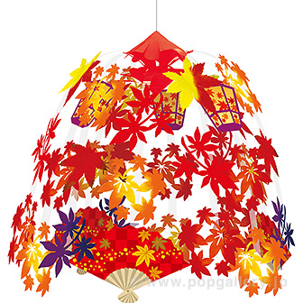上部のひもを1ヶ所吊るだけで放射状に大きく広がるため、店舗やイベント会場の天井など広範囲の空間を短時間で効果的に彩ることが可能です。秋の味覚フェア、敬老の日、または季節の変わり目の店舗の賑わい創出に、視覚的なアイキャッチとしてご活用いただけます。設置・撤去が容易で、店舗運営の効率化に貢献する製品です。