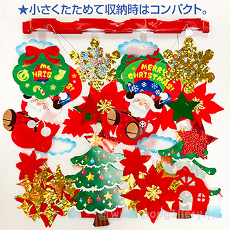 本製品「ふわふわサンタプリーツハンガー」は、クリスマスシーズンの店舗装飾に最適な吊り下げ型デコレーションです。天井から吊るすことで、視認性が高く、お客様にクリスマスの賑わいと暖かさを効果的に伝えることができます。特に、子供服売り場や菓子売り場など、ファミリー層が多く訪れる場所での販促ツールとしてご活用いただけます。ふっくらとしたサンタクロースのモチーフが、売り場全体に親しみやすいクリスマスのムードを演出いたします。