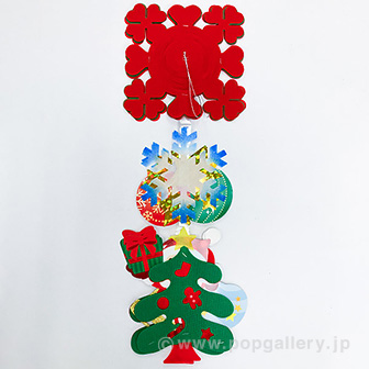 本製品「キラキラサンタガーランド」は、クリスマスの販促・装飾に最適な吊り下げ式のガーランドです。キラキラとした素材を使用しており、店内の光を反射して目を引き、お客様の視認性を高めます。特に、売り場のボリュームアップを図りたい場合や、遠くからでもクリスマスムードを演出したい場所に効果的です。ひもが付いているため、天井や棚上など、簡単に設置して店舗全体の華やかさを向上させることができます。
