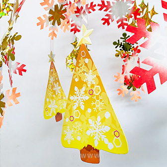 本製品「ウォームキラキラスノーツリーセンター」は、冬のシーズンに向けた店舗装飾に最適なセンター装飾アイテムでございます。暖色系のカラーリングとキラキラとした素材を使用することで、お客様の心に温かさをもたらすような、魅力的な売場空間を演出いたします。天井から吊り下げるだけで、視認性が高く華やかな空間を演出することができ、クリスマスや冬のセール期間中の販促活動を効果的にサポートします。特に、生鮮食品売り場やアパレル店、カフェなどの店舗において、季節感あふれる賑わいを創出するためにご活用ください。