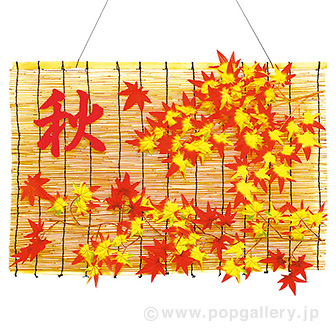 本製品「秋もみじスダレ」は、店舗や売り場に本格的な秋の趣を演出するための装飾スダレでございます。天然素材のスダレと色鮮やかな紅葉の葉を組み合わせた趣のあるデザインが、季節感を効果的に高めます。