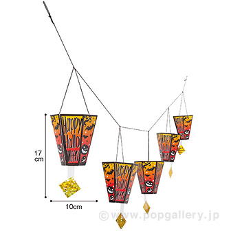 商品名: ハロウィン5連ボンボリサイズ: 全長180cmH27cm材質: 紙・PET・ひも詳細仕様: 両面、5連、平たくたためて収納時はコンパクトな紙製の立体ボンボリが連なって目を引きます。