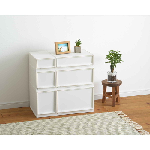 ●並べて重ねて自分好みにアレンジできて、リビングや寝室、サニタリーやキッチンなど家中で使える、引き出しタイプの収納ケースです。