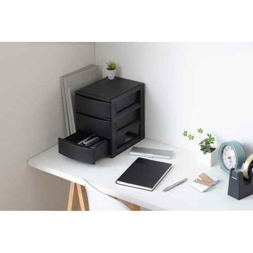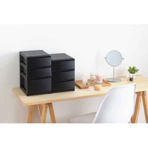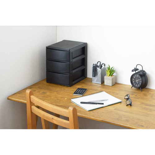 収納ケース 引き出し 幅19.5×奥行26.5×高さ26.5cm A5 浅3段 ブラック