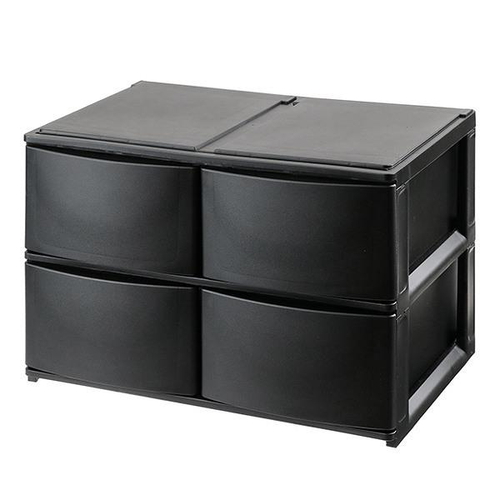 収納ケース 引き出し 幅39×奥行26.5×高さ26.5cm ワイド 深ショート4段 ブラック