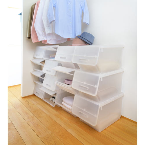●使用シーンに合わせて積み重ねられる収納ボックスです。