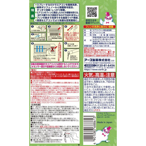 スプレーするだけで、エアコンを簡単洗浄。フィンの奥まで洗浄できる、縦長ワイド噴射です。