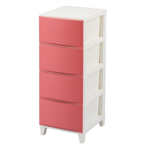 収納ケース チェスト タンス 4段 幅34×奥行42×高さ88cm ルームスシェード サンドピンク