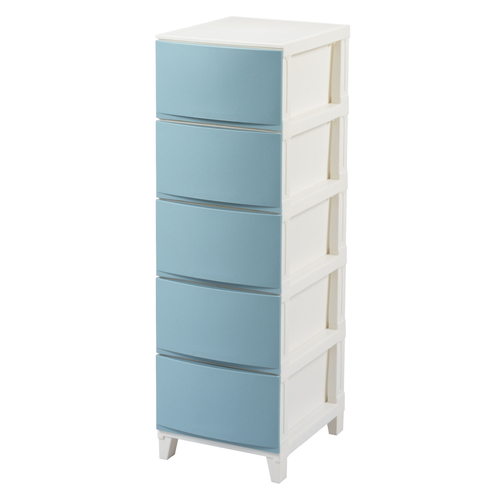 チェスト 5段 幅34×奥行42×高さ107cm ルームスシェード サンドブルー