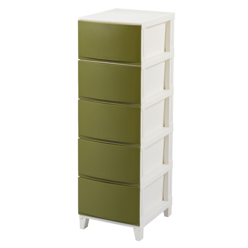チェスト 5段 幅34×奥行42×高さ107cm ルームスシェード サンドカーキ