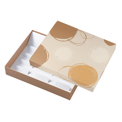 サイズが280×345×60mmのお菓子向けギフトパッケージ。どら焼きにちょうど良い大きさとなっています。どら焼きの詰め合わせにいかがでしょうか。