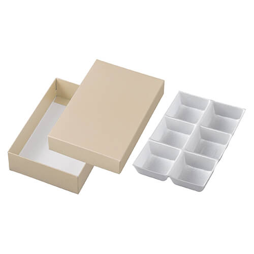 サイズが183×122×47mmのお菓子向けギフトパッケージ。ルミアカップ6個分の包装にちょうど良い大きさとなっています。和菓子類のパッケージ、ギフト包装にいかがでしょうか。