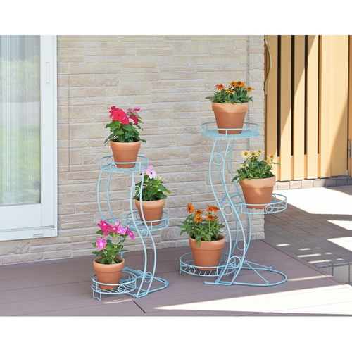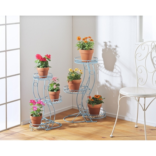 フラワースタンド 心春 S型折りたたみフラワーラック L ブルー