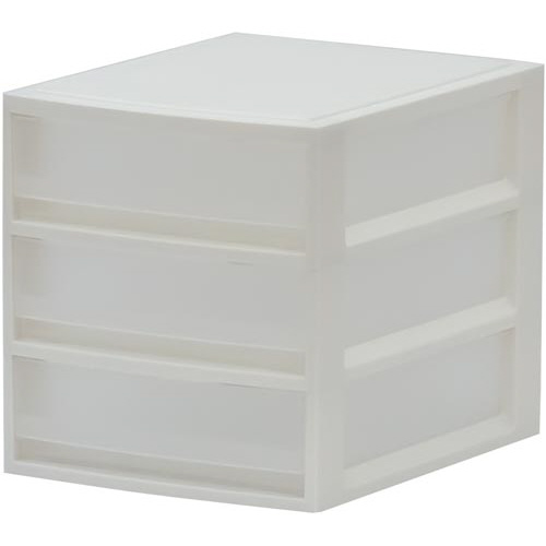 シンプルデザインのレターケース。A4クリアファイルもしっかり収納。 汚れが溜まりにくいフラットな天板と、斜めカット外枠。引出しの不意な抜け落ちを防ぐ、2段階ストッパーを採用。