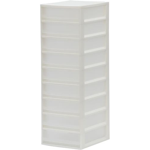 シンプルデザインのレターケース。A4クリアファイルもしっかり収納。汚れが溜まりにくいフラットな天板と、斜めカット外枠。引出しの不意な抜け落ちを防ぐと同時に取り外しもしやすい2段階ストッパーを採用。