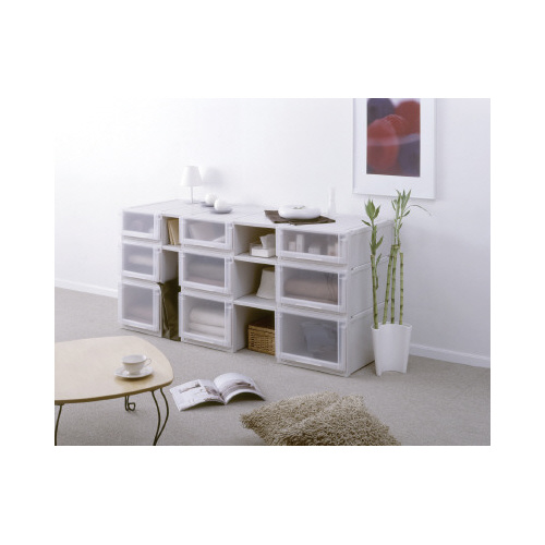 ●材質/天板・外枠・引出:ポリプロピレン、前パネル・前倒れ防止用ジョイント:スチロール樹脂、ゴム脚:エラストマー、補強板:アルミ