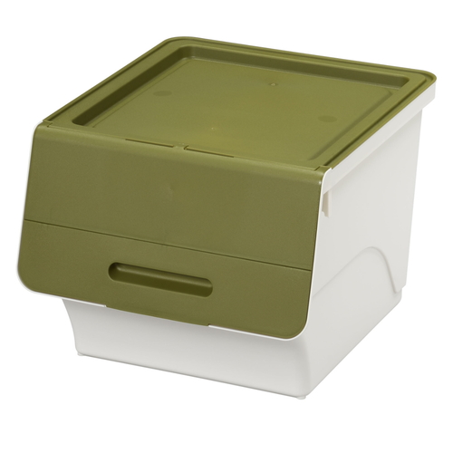 収納ボックス 前開き フロック30 深型 幅39×奥行46×高さ31cm 4段階ストッパー カーキ