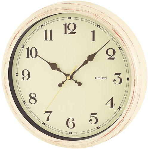 ダメージ加工を施したレトロなデザインが印象に残る。ビンテージウッド調のフレーム(数字・針)の形状もレトロ。