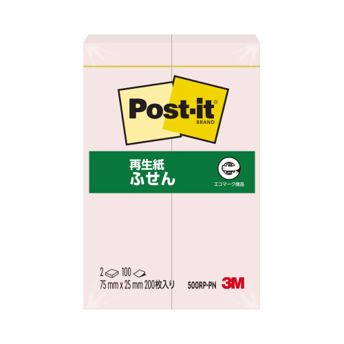 ポストイット 再生紙ふせん 75×25 ピンク2冊