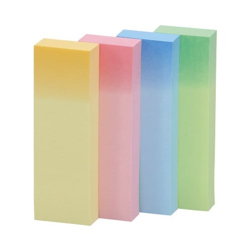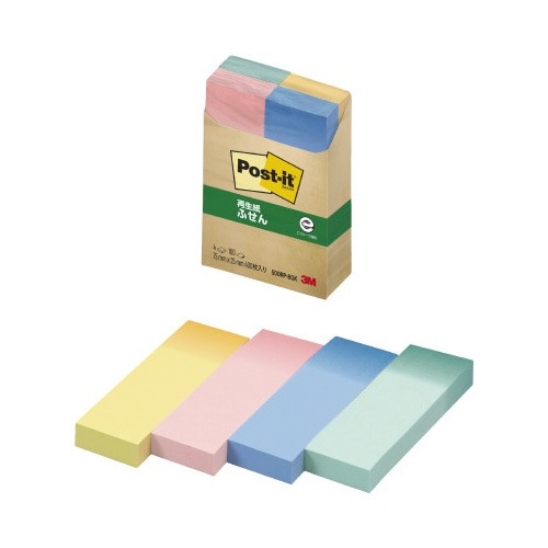 くり返し貼ったりはがしたりできるポストイット通常粘着製品です。上品なグラデーションカラー。伝言メモ、見出しに便利なサイズ。資源の有効利用を考え、古紙パルプ配合率100%の再生紙を使用しています。